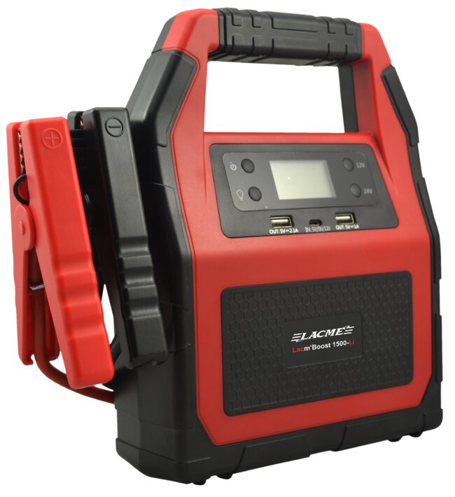 • Booster Lacm'Boost 1500-Li. Au Lithium, 12 V / 24 V - 600 A utiles au démarrage (1500 A max). Équipé d’une lampe et de sorties USB / Allume-cigare. Compact, chargeur-secteur fourni. Pour quad, utilitaire, micro-tracteur et camion compact.